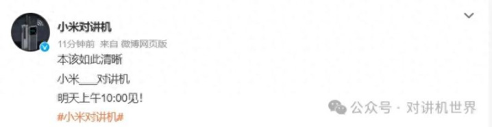 刚刚,小米官方微博号发布了一条信息,正式宣布9月26日10点将发售一款新品对讲机。在信息中突出了对讲,本来如此清晰的信息。而且让大家猜一猜是小米_____对讲机。